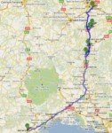 Il presque midi quand je suis chargé, je remonte comme d'habitude par la nouvelle c31, pas de flics aujourd'hui, c'est bon pour mes économies. Mon pote Alain est juste derrière moi quand je passe Le Boulou, c'est cool, je vais pouvoir me faire payer un bon café et un bon pain au chocolat à Vinassan. J'ai le sens des affaires moi!!! On roulera tranquille jusqu'à Remoulins, vu que ce lacheur va vider à Avignon, je termine mes heures de mon côté à Tavel. J'écoute les infos, et c'est pas brillant les prévisions météo pour cette nuit. Alors quoi faire?? Tirer l'amplitude au max et me poser n'importe ou, ou rester ici, partir très tôt et croiser les doigts??? Finalement, j'opte pour la seconde solution, on vera bien.