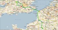 Arrivé sur Birmingham, la circulation passe étrangement bien tandis que sur la BBC Radio 2, Sally Traffic annonce un superbe bouchon sur la M25 avant le Dartford. Je change donc mon plan et descends par la M40 pour contourner Londres par l'Ouest (3).