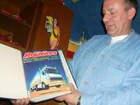 Ensuite, j'ai une multitude d'autres passions, et celle à laquelle je pense bien entendu, c'est ma collection de Photos de camions, plaquettes et articles publicitaires de Transporteurs, docs de constructeurs, Pin's, et enfin les miniatures et les maquettes de poids lourds. Je vous reparlerai de tout cela par la suite. Sur le plan sport passion, c'est le cyclisme qui est mon terrain de prédilection après près de 15 ans de compétitions.