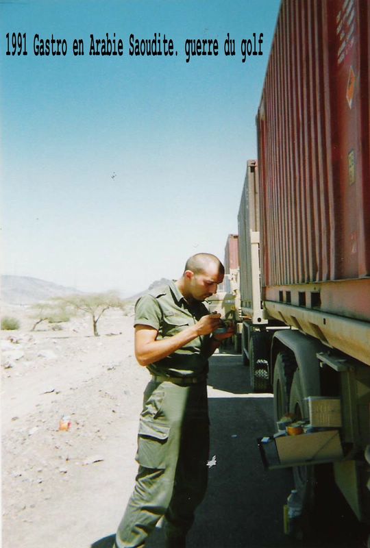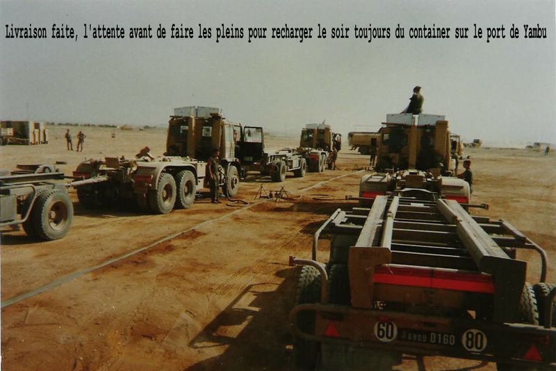 Je suis parti 5 mois et j'ai fait 30 000 KMS. Nous étions en convoi de 50 camions remorque et faisions la ligne en containers entre Yambu (port en Arabie Saoudite sur la Mer rouge) et la frontière Irakienne.