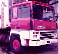 Nous étions à 20 Km/h, mais ça fait drôle, mon père m'est tombé dessus, et heureusement que ma vitre était fermée, car nous étions tous les deux dessus; mon père s'est blessé avec le levier de vitesse, mais rien de grave pour personne, nous sommes sortis par le pare-brise. Résultat des courses, une caisse de semi changée et une cabine largement refaite. Ce qui lui a permis d'accompagner mon père jusqu'à sa retraite bien méritée. Ce fût donc le dernier camion de mon père, il y a plus de quinze ans.