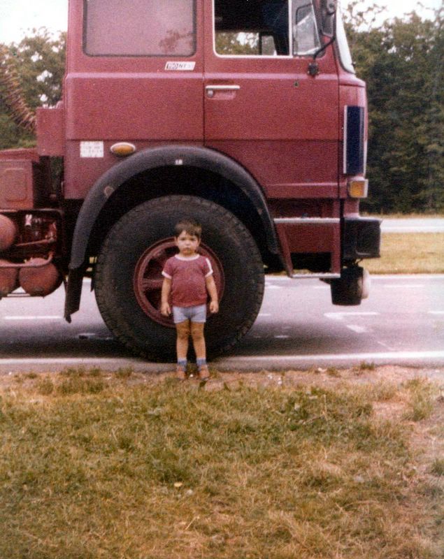 Je voulais rendre hommage à mon pere Aimé, plus souvent appellé Mémé ou Sandalette (regardez ses pieds..), qui fut chauffeur durant toute sa carriere, dans des entreprises comme Dentressangle(26), Ramel (01), Sciaqua(84) ou encore Chatain(26). Il est à la retraite depuis une petite dizaine d années. C'est grace à lui que j'effectue ce metier avec passion depuis 13ans déjà !