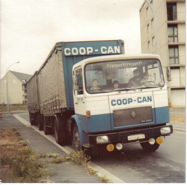 Voilà quelques photos de SAVIEM et BERLIET d'une trentaine d'années. C'est mon père qui pilote et moi assis sur le siège passager, j'avais dix ans... Maintenant, je suis toujours assis à droite en tant que formateur (eh oui, il en faut!). Il travaillait dans une coopérative agricole dans la région de CAEN 14, il y est resté jusqu'à la retraite bien sûr avec du matériel plus récent. Suivent les photos des camions qu'il a eu durant sa carrière.