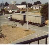 le F 10 attelé à un plateau et une autre semi polyvalente (une benne à rideaux coulissants) comment ça marche: un système de parois descendaient sur les côtés avec des vérins pour charger du vrac