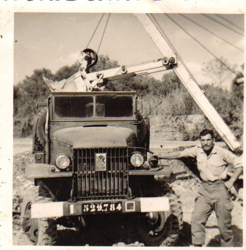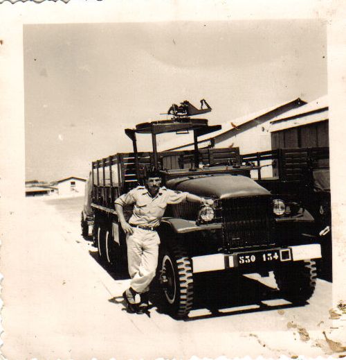 en allemagne au 411 d artillerie a mulen baden en 58,on remarquera la tourelle, sur le GMC,pour installer une mitrailleuse