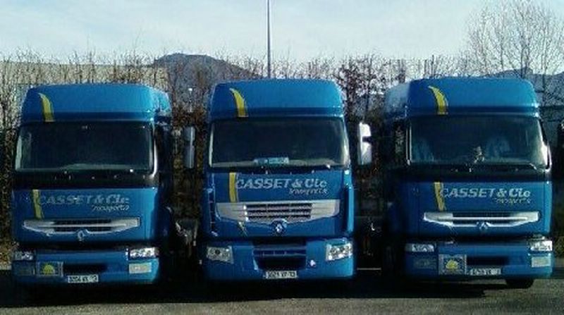Un tiers du parc de véhicules de l'entreprise. Un new premium 450 dxi entouré de deux premium 420 dci