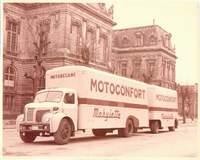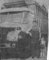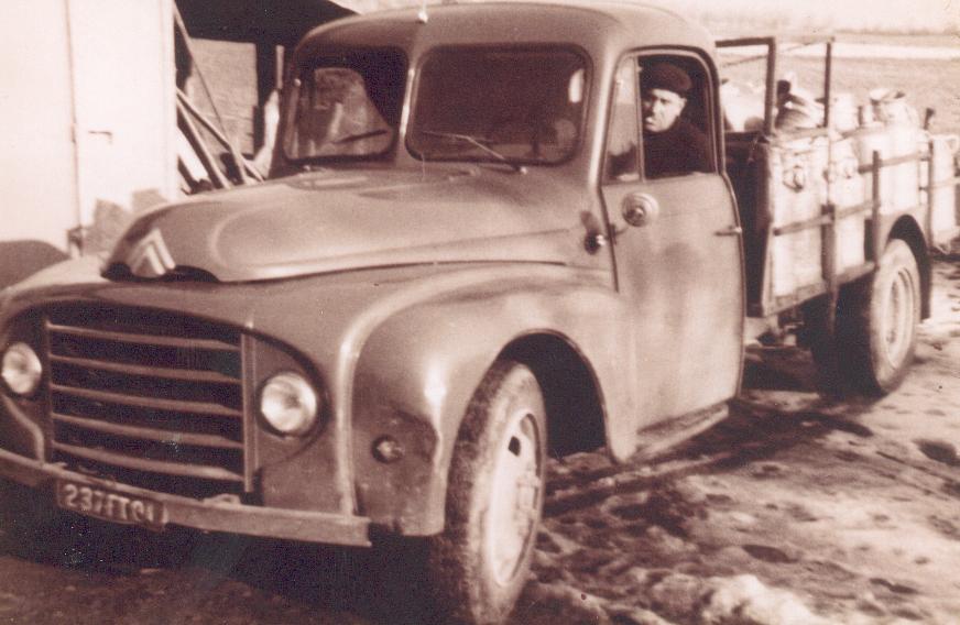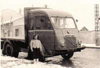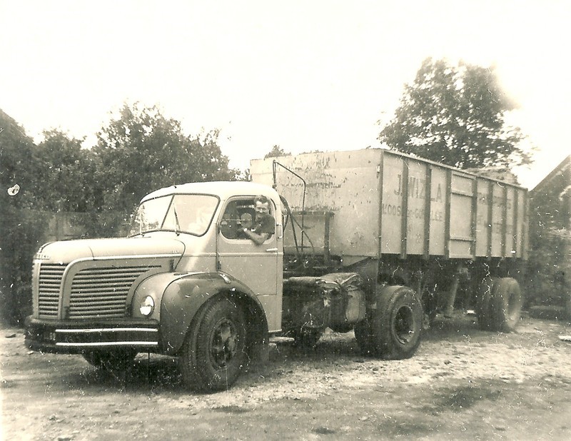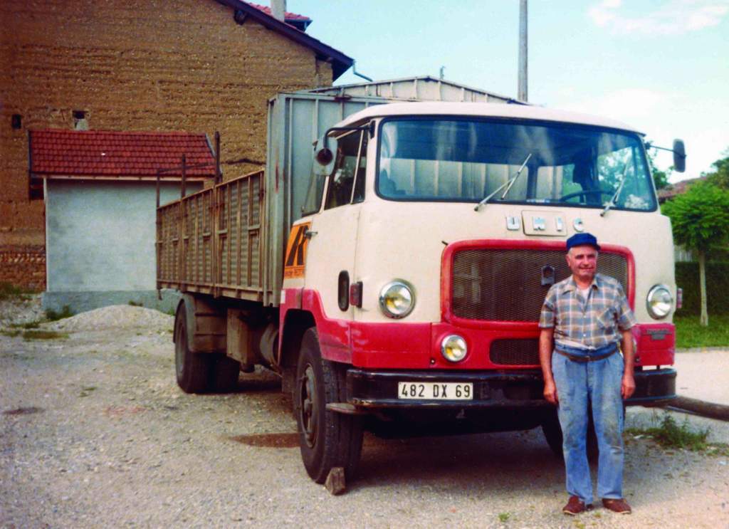 Voici la photo de mon grand père avec son camion UNIC dont il était le propriétaire jusqu'en 1979 (année de sa retraite). Il faisait principalement des livraisons de matériaux de construction ou du bois et du charbon entre la Saône et Loire, le Rhône et l'Isère. Je suis monté quand j'avais environ 5 ans dedans mais au démarrage du moteur, j'ai eu très peur et me suis mis à pleurer. Fin de ma courte expérience de conducteur routier. Avec regret, vers 10 ans, j'aurais bien aimé aller en "voyage" avec mon grand père. (Lino69) =>