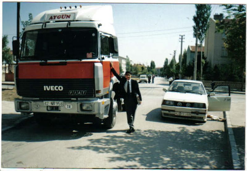 Moi, Benoit, j'avais 15 ans, toujours l'envie d'être routier mais en BEP mécanique PL pour les études ce qui ne m'a pas empêché de partir avec mon père pendant les vacances =>