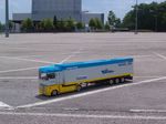 Passionné de camions et de modélisme, j'ai réalisé cette maquette d'un ensemble routier pour le transport en formule 1.