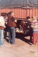 Le moment immanquable sur la ligne, c'était la bouffe. Des repas prévus pour une heure, qui pouvaient se terminer fort tard le soir. Immuables moments ou les pique assiettes ne sont jamais loin des veritables cordons bleus, qui roulaient leur bosse sur la ligne. Au delà de la bouffe, vous pourrez remarquer que nous ne sommes jamais à court de boissons; Dieu merci, car on a vite fait de se deshydrater sous certaines latitudes.