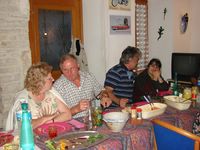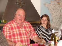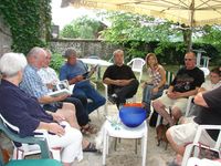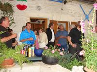 Nous voici donc maintenant au lundi 28 mai 2007. Il n'y a plus encore présents que les traînards, les retraités, et ceux pour qui l'occasion est toujours bonne pour boire un coup. Oui, je sais, les trois définitions s'appliquent en général à chacun de nos convives du week-end, et c'est pour cela qu'on les aime. L'ambiance du lundi matin est particulière, tout le monde voudrait partir vite car il y a du chemin à faire, mais chacun retarde encore un peu, ce qui fait que le midi c'est une tablée conséquente qui nous fait honneur.