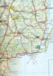 Je ne sais plus où, je stoppe à une station Statoil pour enfin acheter une carte. Mais pas grand chose, rien que des petites cartes régionales, bourrées de pubs d'entreprise locales... J'arrive quand même à y trouver mon bled, j'achète quand même cet espèce de dépliant. Bergkvara se trouve bien à mi-chemin entre Karlskrona et Kalmar, sur la côte est.