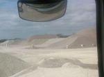 De vulgaires tas de sable et de gravillons qui rentrent dans la composition des enrobés. Plusieurs types d'enrobés existent, classés par référence suivant les granulométries et les "mixtures"...L'enrobé est donc composé de sable (0/4 maçon ou filler), de granulas (gravillons) et de bitume qui lui, fait office de liant. Le bitume est obtenu par distillation du petrole brut, a savoir que sur les 1300 types de brut référencé, seulement 10% sont capables de fournir du bitume, et seulement 30 sont utilisables en Europe.
