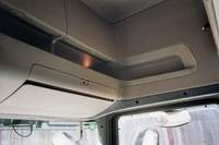 Au dessus du pare brise, un espace dans la cabine qui fait le tour devant, pour y mettre des documents, avec au dessus 4 immenses coffres pour ranger ses affaires.