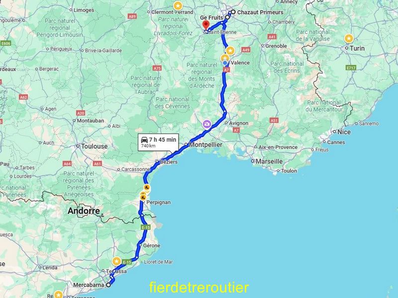 Je repars finalement le pied dedans, pas trop lourd, mais avec 7 CMR sous le bras, on fera ce qu'on pourra demain. En attendant, ce soir je fais parler la poudre poussé par un fort Mistral, chaud comme une barraque à frite, chaud comme un marin dans le quartier rouge d'Anvers après 2 mois en mer. Des travaux tous les 5km, mais pas de Girteka embusqué, pourvu qu'ils soient tous coincés en Bielorussie. J'ai coupé mes 45 au Château de Salses, mais j'ai hésité à y rester 9h et gagner les 45, d'un autre côté, j'ai le temps pile poil d'arriver à Figueras, ou me taper tous ceux qui vont démarrer en même temps demain matin. Vamos, tout à la régule et plus si affinités côté spanish, je me suis garé à 23h57, j'ai dépassé d'une minute l'amplitude, mais je suis bien garé entre un J Cano et un Trota, cool, c'est deux thermo king.