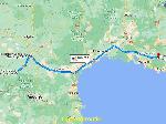 Nono m'a filé un retour sur Toulouse à Escalquens pour La Garde, je casse la graine à l'ombre des platanes sur la 117, j'étais bien. Mauvaise pioche arrivé chez Gache Chimie, il y a pas de transpal electrique, ni de quai. Il y a bien des rampes mais bon, je suis pas un container, et il fait pas non plus 40°,juste 37, pour tirer 20t au transpal à main, ça va aller, c'est supportable... Bref, j'ai bien transpiré. Les 40 sont atteinds cet apreme vers Lezignan et vu la transpirée, je me reprends une bonne douche à Narbonne. Le trafic s'écoule étonnement bien aujourd'hui, rien à voir avec hier, ça repose. Vu que je suis en ADR, je garde l'A8 après La Barque et je me gare sur le grand parking en terre au péage à St Maximin, avec 8h30 de guidon, mais je peux valider une bonne 11. Les parkings en terre, c'est quand même mieux que le goudron, on ressent moins la chaleur.