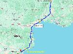 A Nimes j'ai les crocs, je vois de la place au calme sur le parking, c'est pour moi ! Ici ça a pas fait semblant non plus, il y a des arbres couchés, pourtant le vent c'est assez habituel par là. Je traine pas, une demi heure pour avaler une salade Sodebo, y en a assez. Calé à 84, j'arrive quand même à Perpignan pour finir ma première période.