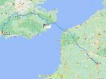 C'est bien des feignasses ces sportifs, pas un seul ne s'est approché de la salle de gym cette nuit. Je décolle à 5h05 avec pile 9h de dodo, je serai bien parti avant, mais c'est pas possible. Il pleuvasse pour aller récuperer l'A1 à Wancourt, une fois sur l'A26 j'actualise un peu Google Map, et la situation empire à vue d'oeil sur Calais. Au Tunnel, il y a toujours 4h d'attente d'annoncées, Sam est devant en éclaireur, il me tient au courant de la situation. Je me décide en arrivant à St Omer, j'abandonne l'idée du bateau, je prends la direction de Boulogne sur Mer. Au péage il y a une ribambelle de gendarmes en train de se mettre en place à mon avis pour stocker du camion bien avant Calais.