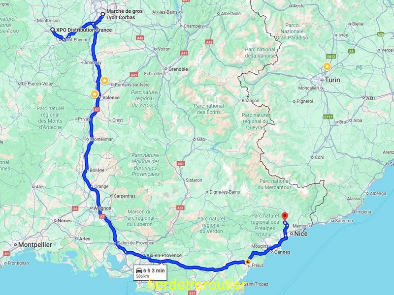C'est déjà bien le bronx pour rejoindre Andrezieu, entre trafic, travaux et vacances, il y a pas vraiment d'heure creuse, 1h pour arriver au quai 59, j'ai l'impression que ça a duré le double. Mine de rien, j'ai passé 2h à quai, ce qui m'a largement laissé le temps de passer sous la douche 4 étoiles de XPO42, ici, c'est vraiment une très bonne agence. Quand je repars à 19h, je pensais être tranquille, mais il drache sa race, ça avance que dalle jusqu'à St Chamond. Plus je descends vers le sud, plus il pleut fort, après Valence c'est l'enfer sur Montélimar, la tempête, fait exprès c'est encore plein de bagnoles qui savent plus ou se mettre sur l'A7, mais surtout au milieu à 70, je maudis les vacances, RBNB et toutes ces merdes. Ils peuvent pas rester tranquille tous ces fêlés là !?? Après Orange ça se calme un peu, je fais ma 45 à Avignon, à la station garé en merde.