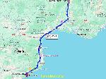 Sur l'A7, l'heure est aux retours de week-end, c'est bien chargé dans les 2 sens.Comme tous les dimanches que j'ai le temps, je cale le régulateur sur 82. Aidé par le mistral particulièrement fort, la conso baisse rapidement, au point qu'arrivé au pont sur le Rhone après Orange, l'ordi affiche 19,3. Avec 7t dans la remorque quand même. Passé Montpellier ça va, mais le vent lui, est plus de dos, c'était trop beau. Comme d'hab je coupe mes 45 au calme au chateau de Salses.