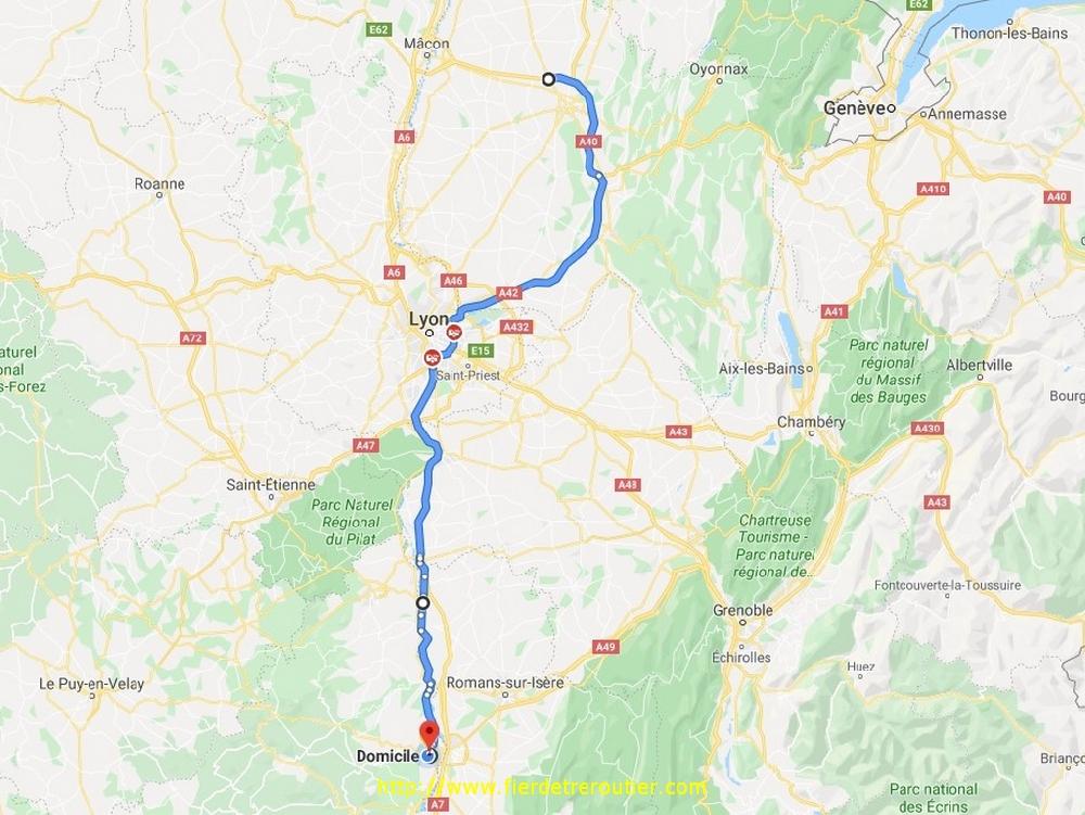 Bingo quand j'arrive à St Rambert la sortie est obligatoire à Valence NORd et c'est vite le chaos, donc je passe par le côté Ardèche, par chance personne ou presque n'a eu l'idée, j'ai perdu que 20/30 minutes quand je reprends l'A7 à Loriol, en schant que d'autres ont mis plus d'une heure rien que pour sortir de l'autoroute. Par contre les premiers kilomètres ont été bien tendus, queues de poisson, regards de travers, et gros trafic, c'est dans ces moments là, juste après les gros bouchons que ça cartonne le plus et ou tout est possible.