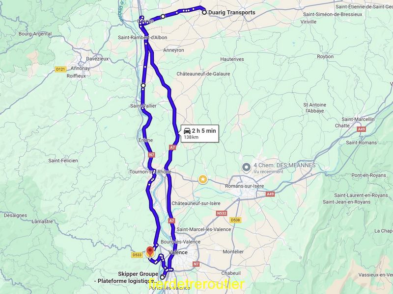 Je monte direct à Salaise, c'est à livrer foulée. Il y a un Mazet qui attend depuis un moment, au guichet la fille lui a dit que si Duarig était en retard, il prenait ma place. Mais voilà, j'ai fait primeur deuxième langue, je suis pas en retard, ni le lundi et encore moins le vendredi. Une fois vide je vais me casser une graine, je recharge comme hier à Andrézieux pour Le Pontet encore. C'est tellement le bronx pour aller à l'autoroute à Chanas que je suis dit pourquoi pas monter par Roussillon et faire mon dépucelage de la nouvelle entrée Reventin. Quand je passe Vienne, une voiture a pris feu dans l'autre sens, les 2 occupants sont partis en courant traversant les voies et le grillage, à mon avis, ils étaient pas très nets.