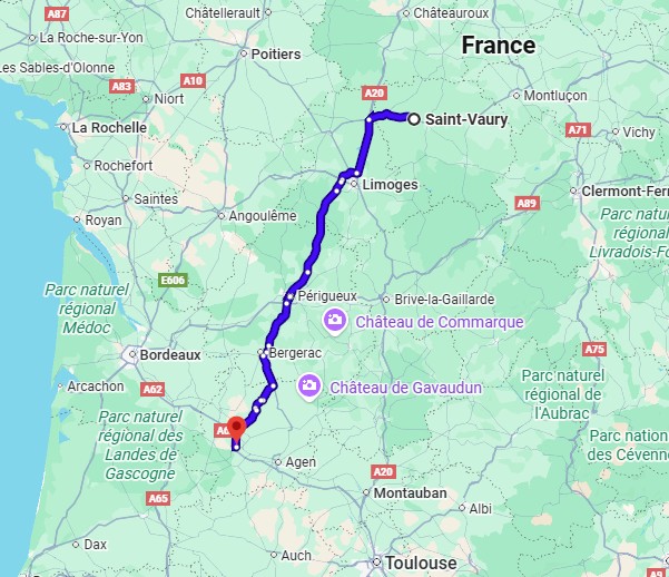 J'arrive à Limoges juste avant 7h, ça roule. L'entrée de Limoges c'est pas la porte de Bercy niveau trafic mais cette sortie est mal fichue, c'est la route du centre routier, de la zone industrielle mais aussi la route de Périgueux et d'Angoulême, autant dire qu'il y a du monde. Je suis derrière un kolega, il doit avoir un piston percé pour rouler aussi doucement. Je le crame au premier bout de 3 voies. Ensuite ça roule jusqu'à Miramont. Je savais que ça ne passerait pas en 4h30, il me faut couper 45. En 4h30 je suis à Tonneins, il manque un quart d'heure. Pas grave.