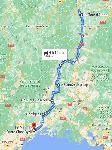Vraiment pour critiquer, les chiottes et les douches pourraient être à peine plus grand, mais franchement c'est pas mal. Je démarre à 7h. Pour monter à Méjannes le Clap, j'ai le choix, vu que j'ai le temps je prends la route touristique par l'Ardèche, Viviers Villeneuve de Berg, ( ou St Germain pour faire plaisir à Mich 07 ) Ruoms, Vallon Pont d'Arc, Barjac, j'adore passer par là.