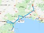 A 7h15-20 je mets en route, ça roule déjà sévère. Je commence à Juvignac, banlieue ouest de Montpellier. Toutes les routes qui entrent à Montpellier sont blindées de bagnoles, moi je paye juste un petit ralentissement au grand rond-point où il y a les paillotes des marchands de fruits. Je passe par une interdiction aux 12t pour entrer dans Juvignac. Cette interdiction c'est un caprice du maire ou de je ne sais qui, faut pas s'occuper des caprices sinon ils recommencent, comme les enfants.