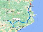 A 13h30 j'ai mes 24 tonnes de sciure agglomérée. J'attaque la descente, pas loin, j'ai les crocs je m'arrête casser la graine. Je descends piano piano, les palettes sont sur deux, le poids est en hauteur, ça balance bien même si la route est belle. Arrivé à la C25 tu respires mais de Manrèse à Vic ça grimpe sec par endroits, ensuite ça descend jusqu'au niveau de la mer.