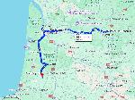 Là il me faut rouler un bon bout encore, jusque de l'autre côté de Bordeaux. J'attaque ma miche, elle est aussi bonne que belle. La maison est au bout d'un long chemin sous des arbres, purée tu m'étonnes que mon déflecteur est croûté, le S c'est beau mais trop haut.