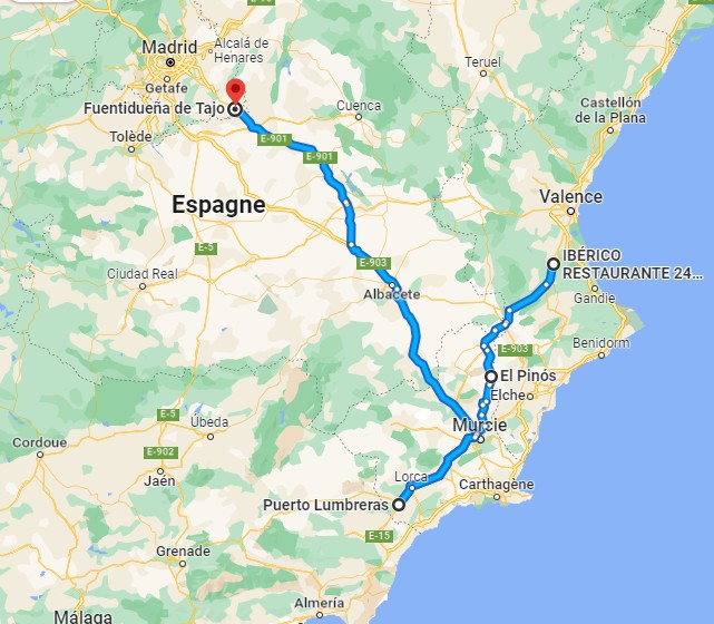 Je n'ai plus qu'à faire tourner les roues au max, Murcia Albacete... Les paysages sont sublimes, quand je pense que je suis payé pour faire ça, c'est presque indécent... Je termine ce périple à l'entrée de la province de Madrid avec 8h50 de volant pour 709km, presque comme hier. Ah mais je connais ce resto j'y suis déjà venu il y a quelques temps, ce n'est pas le meilleur troquet d'Espagne mais il y a une douche.