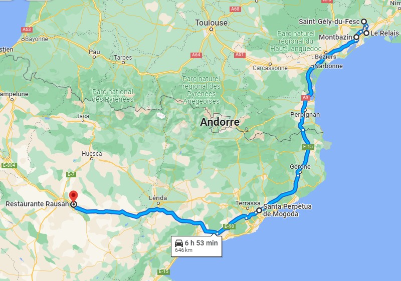 Le temps de me garer au relais des Corbières j'ai 9h04 de volant, merde ! Bon ben comme d'hab' je considère que c'est 9 et voilà.