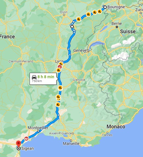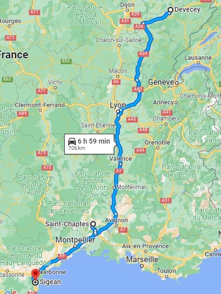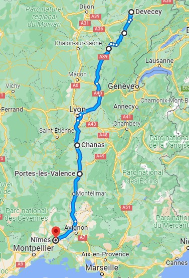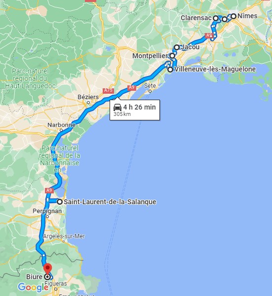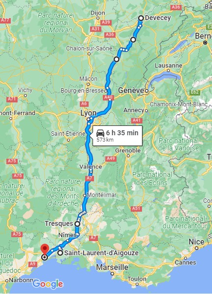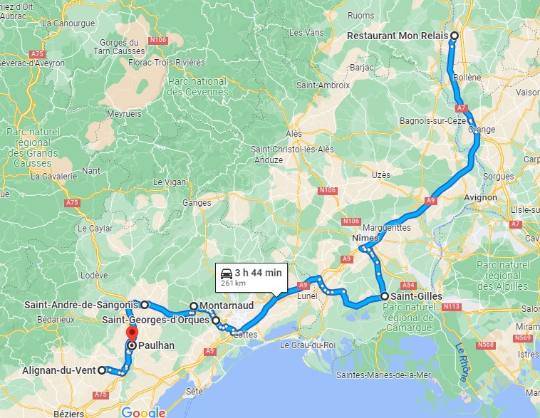 Ensuite je file à Jacou, avant depuis là je passais par Sommières et le nouveau contournement de Milhaud mais désormais Restinclières est carrément interdit. Mainteant faut payer de Lunel à Montpellier, c'est pas le bout du monde non plus.