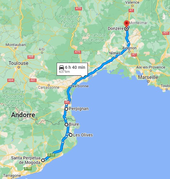 Je mange un bout à l'ombre et je prends la direction du sud. Je devais poser une piscine à Tarragone en passant mais elle a été reportée à dans 15 jours. Allez go !
