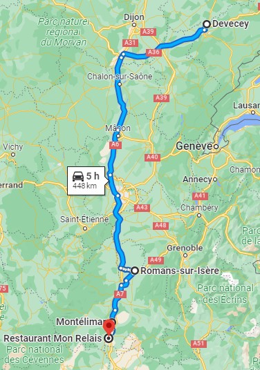 Donzère-Devecey ça ne passe pas en 4h30 je fais une coupure à Villemotier, je me prends du pain évidemment.