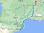 La route de Carca est coupée à Capendu, je reprends l'autoroute à Lézignan, pas le choix. Je passe Toulouse vers 19h il me semble, c'est chargé mais ça roule.