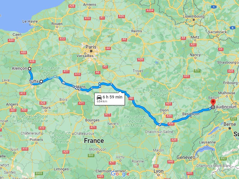 Oh ben ! Je passe au gas-oil et je me rentre par la Haute-Saône, à 19h le camion est posé à Bourogne.