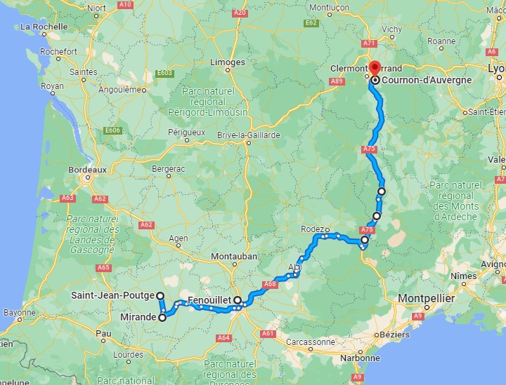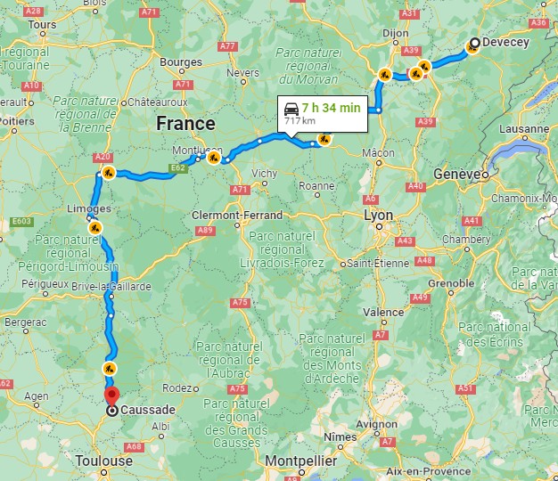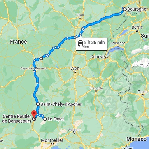 Je me fais une ou deux tites coupures par ci par là dans l'après-midi. Les travaux d'enrobé à Brive sont enfin terminés, on gagne un quart d'heure de bouchon. . Je suis un peu juste en démarrant de Bourogne, là en partant de Besançon je suis cool, je quitte l'autoroute au sud de Brive pour garder la nationale tout du long.