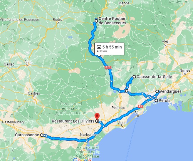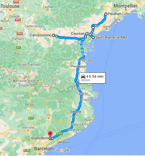 Je n'ai plus qu'à remonter à Maureilhan par la Minervoise, 20h15 garé, au top !