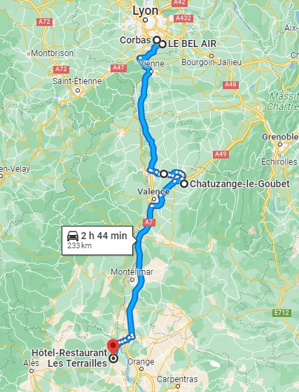 Il ne reste plus qu'à me rapprocher, je finis cette petite journée à l'entrée de Bagnols sur Cèze, le relais des Terrailles.