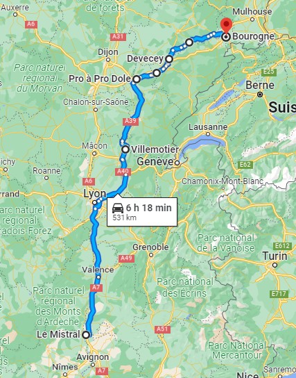 A 18h45 j'embarque le chariot et je me sauve. C'est la bonne heure pour passer Avignon, à 20h15 je suis au Mistral à Lapalud, j'en ai ma claque.