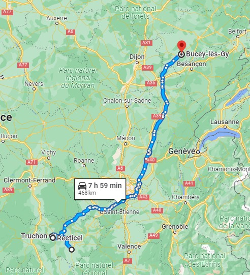 Lons, Dôle, la route des Vosgiens à 18h30 je suis garé au resto de Bucey les Gy, c'est le plus proche de V'zoul, il n'y a plus rien pour nous là-bas.