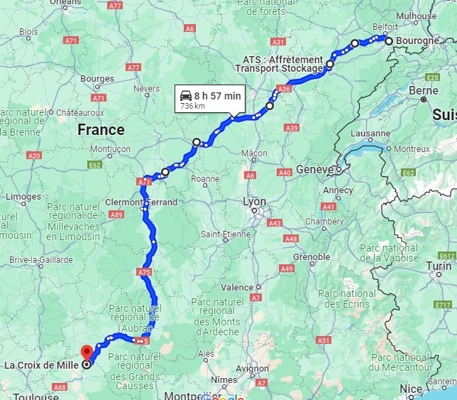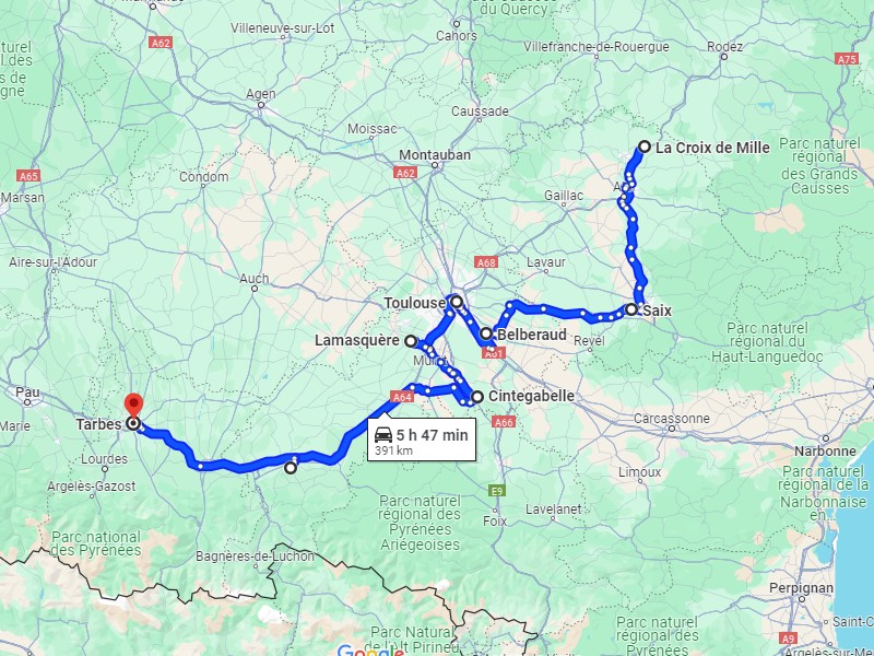 J'arrive à la Croix de Mille à 19h30, j'ai 9h59 de volant, tip top. La Croix de Mille c'est Carmaux, Jaurès a été député ici, hier soir il a dû se retourner dans sa tombe.