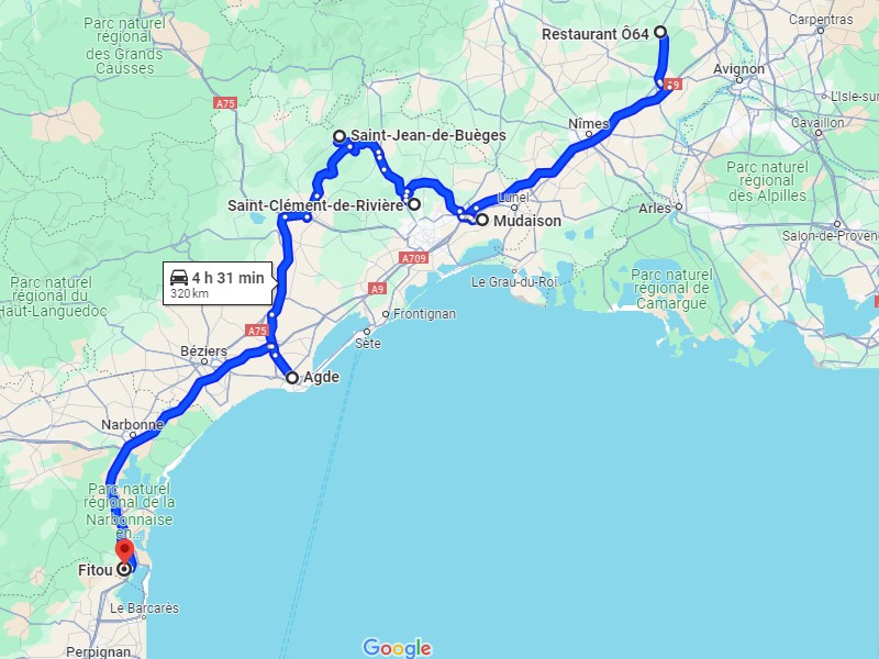 A 13h je suis à Mireval, bled tout en longueur, garé à 2 ou 300m, je dépose encore une réno chez des petits vieux, mamy a fait du café, nickel.