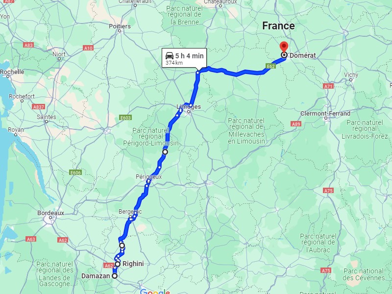 Je mange un bout vite fait après Bergerac, un quart d'heure pas plus, sait-on jamais. Les 4h30 de volant m'amènent de l'autre côté de Limoges.