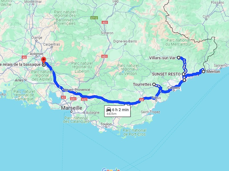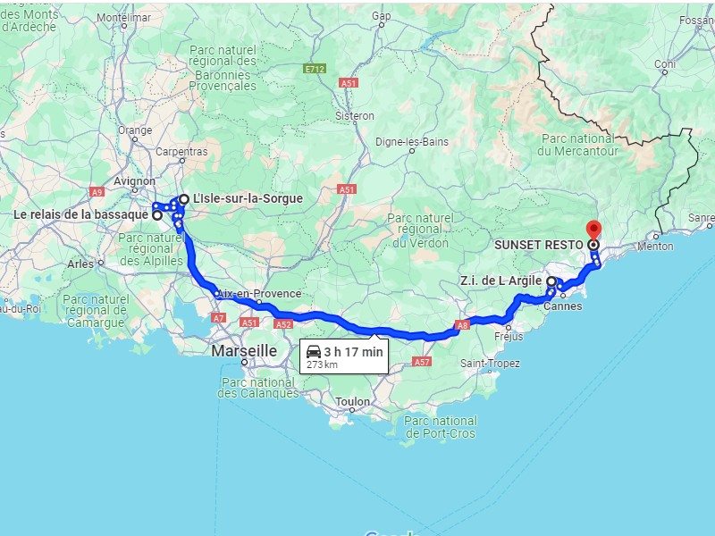 La livraison de 9-11h a été faite hier soir, je peux prendre la direction de la Côte d'Azur. Dans le 06 c'est full assistance petit camion,j'appelle Cyril de Grasse pour qu'on se cadre. J'ai un peu d'avance mais ça sert à rien, il a une assistance dans le Var ce matin avec Sylvain. Boh pas grave, j'ai donc le temps, je quitte l'autoroute à Aix pour prendre la N7. J'économise quatre sous mais surtout ça me permet de revoir la route. Tiens le troquet à gauche entre le NPA et le Mily-Mètre n'existe plus, c'est un marchand de tronçonneuses maintenant.