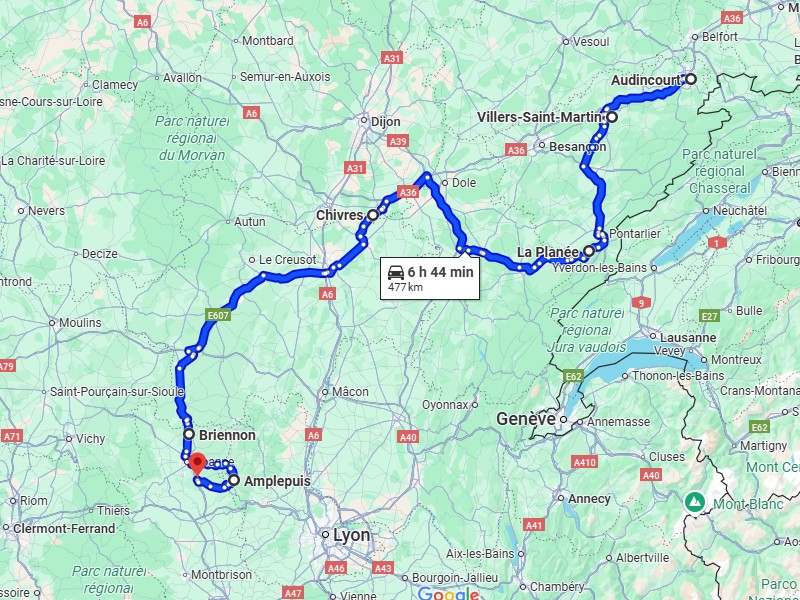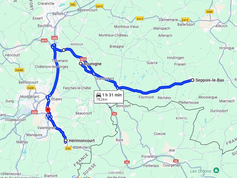 La tournée commence chez une salariée de Waterair à Hérimoncourt ( bled en court ). On est dans le pays de Peugeot mais ce n'est pas un prototype de bagnole que je livre mais un proto de piscine. Photos interdites comme à Belchamp. Nan je déconne, là je n'ai que les colis d'accessoires, rien de neuf. La suite est demain à Baumes les Dames, je ne vais quand même pas aller dormir à Baume, je redescends à Audincourt. ( bled en court ) J'arrête avec ça. Fin de cette mini journée, c'est bien de reprendre avec un petit 4h de boulot.