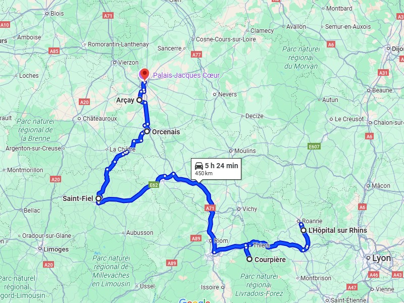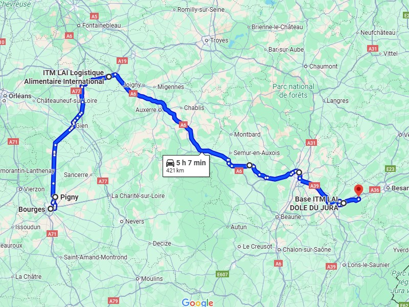 A 6h30 je suis au dépôt, j'embarque le chariot après avoir bougé les supports sur la semi de JC. Faudra juste que je pense à lui remettre dans les bons trous en fin de semaine. Il est bien trop tard pour passer par Verdun sur le Doubs, je fais Seurre Beaune comme ça on ne paye que de Beaune à Châlon sud et on ne perd pas trop de temps, en 4h30 je suis à Montluçon, c'est dans la normale.