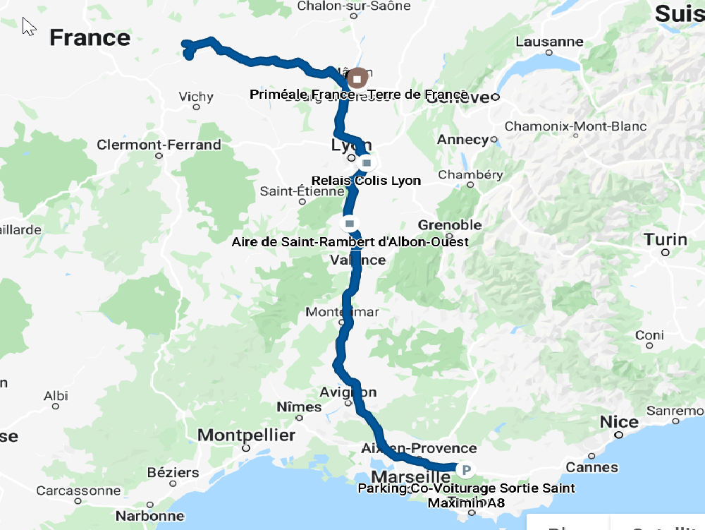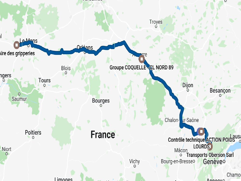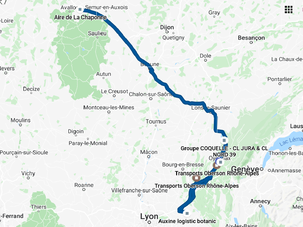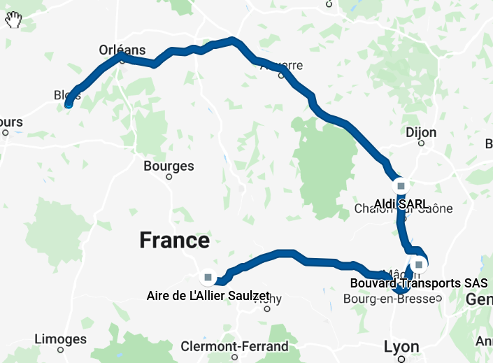 Une fois lesté de mes 28t de paloxs, on commence à descendre direction Macon... Après une pause ravitaillement à Leclerc Avermes, je finis ma journée à Replonges, non loin de mon client de Manziat...